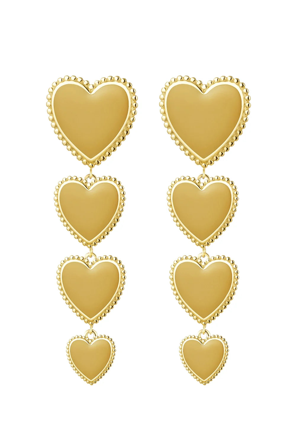 Maak een statement met deze prachtige hartvormige oorbellen! De speelse, glanzende hartjes in verschillende groottes geven een opvallende en romantische uitstraling. Dankzij het verfijnde design zijn ze perfect te dragen bij zowel een feestelijke als een casual outfit. Verkrijgbaar in de kleuren rood en beige.